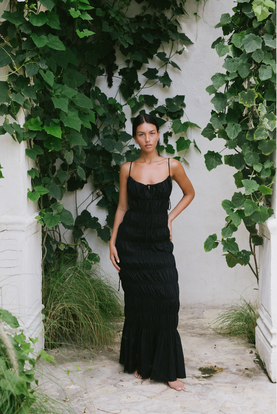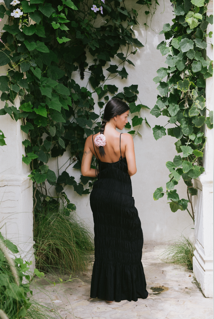 Designed for elegance and comfort, Cloud Evening features an elasticated bust that provides a perfect, comfortable fit while hugging the body in all the right places, creating a flattering mermaid silhouette. Whether you're attending a formal event like a wedding, cocktail party, or a romantic date night, this dress will make you feel like you're walking on air. The adjustable shoulder straps can be tied together or separately to create your own look!
