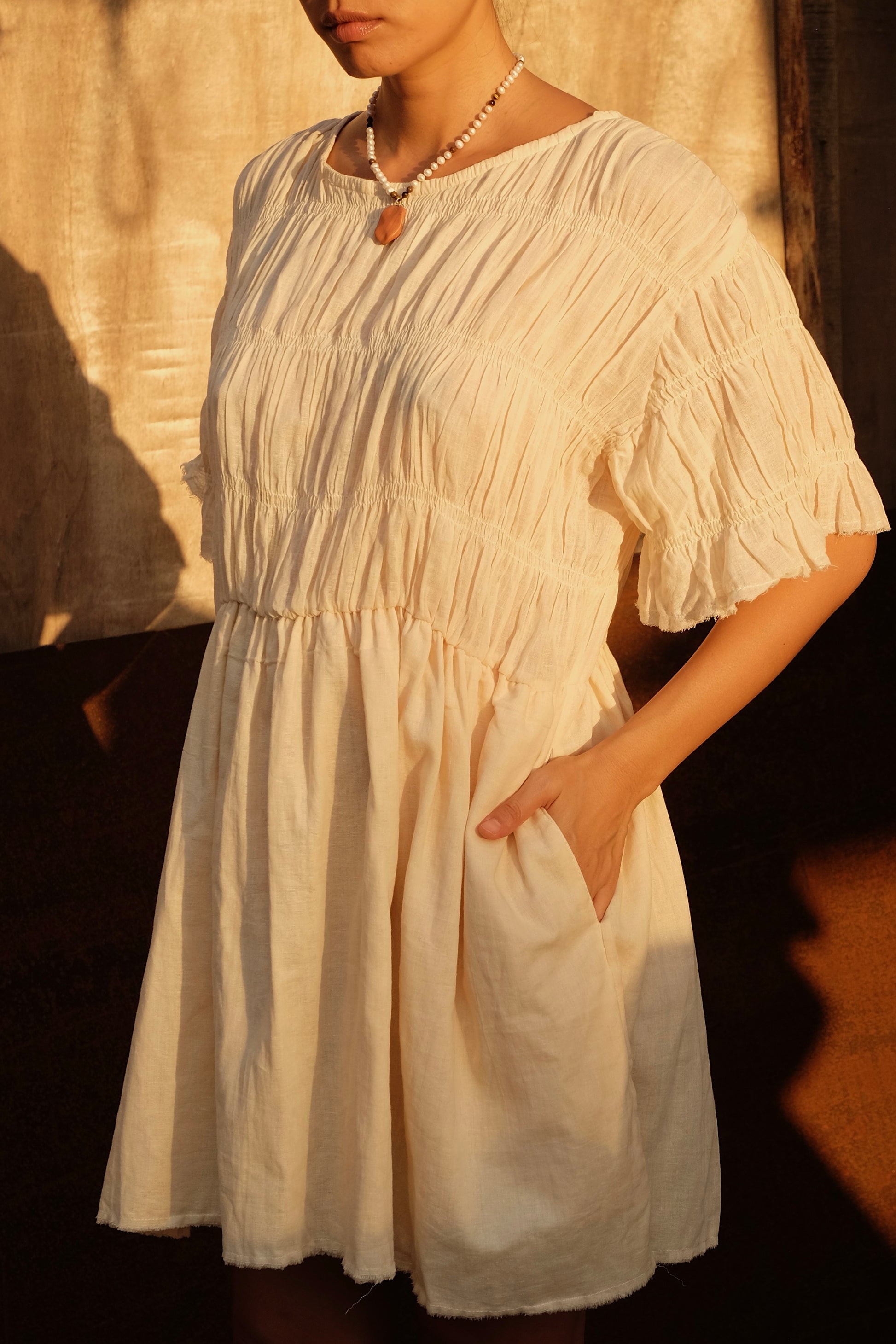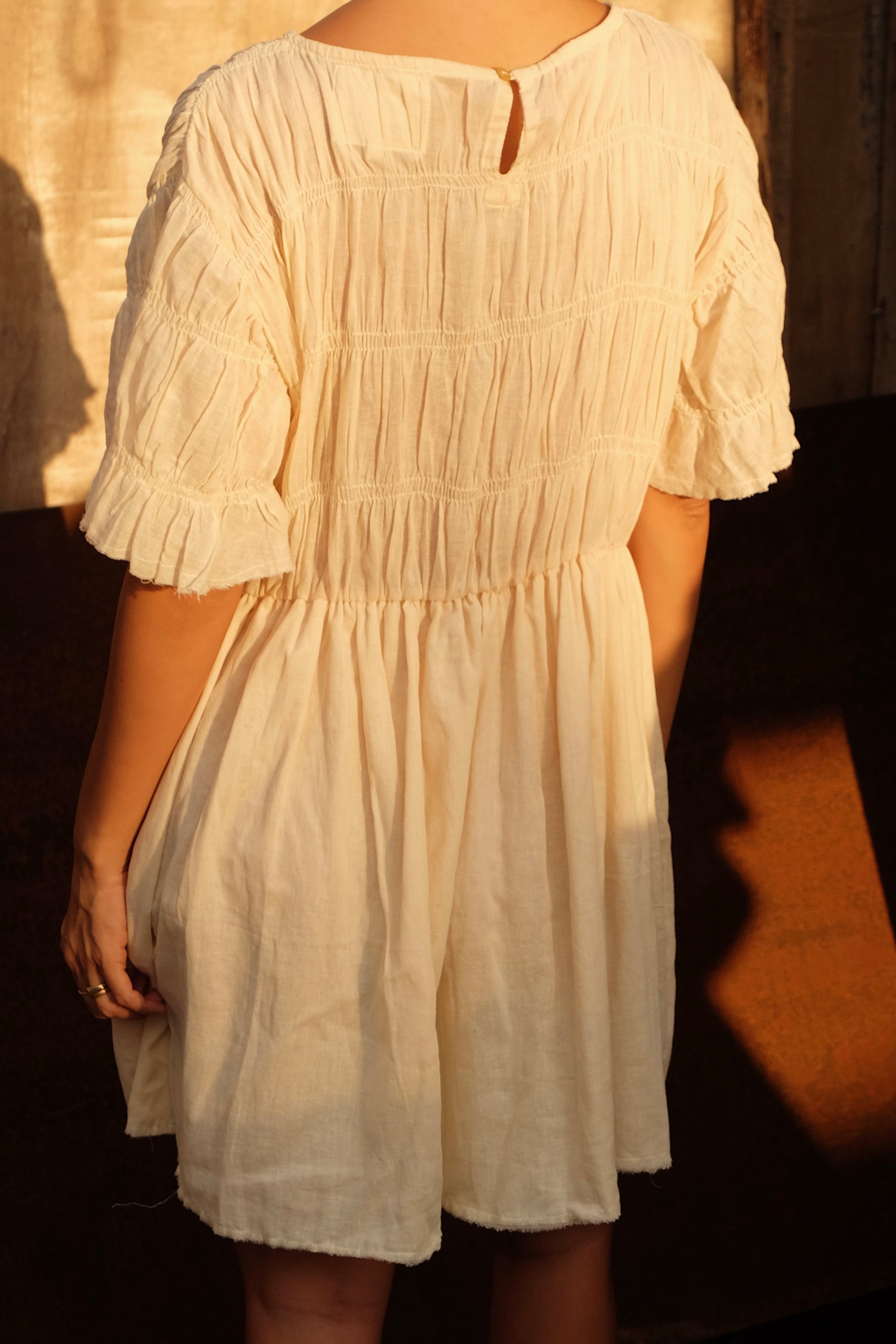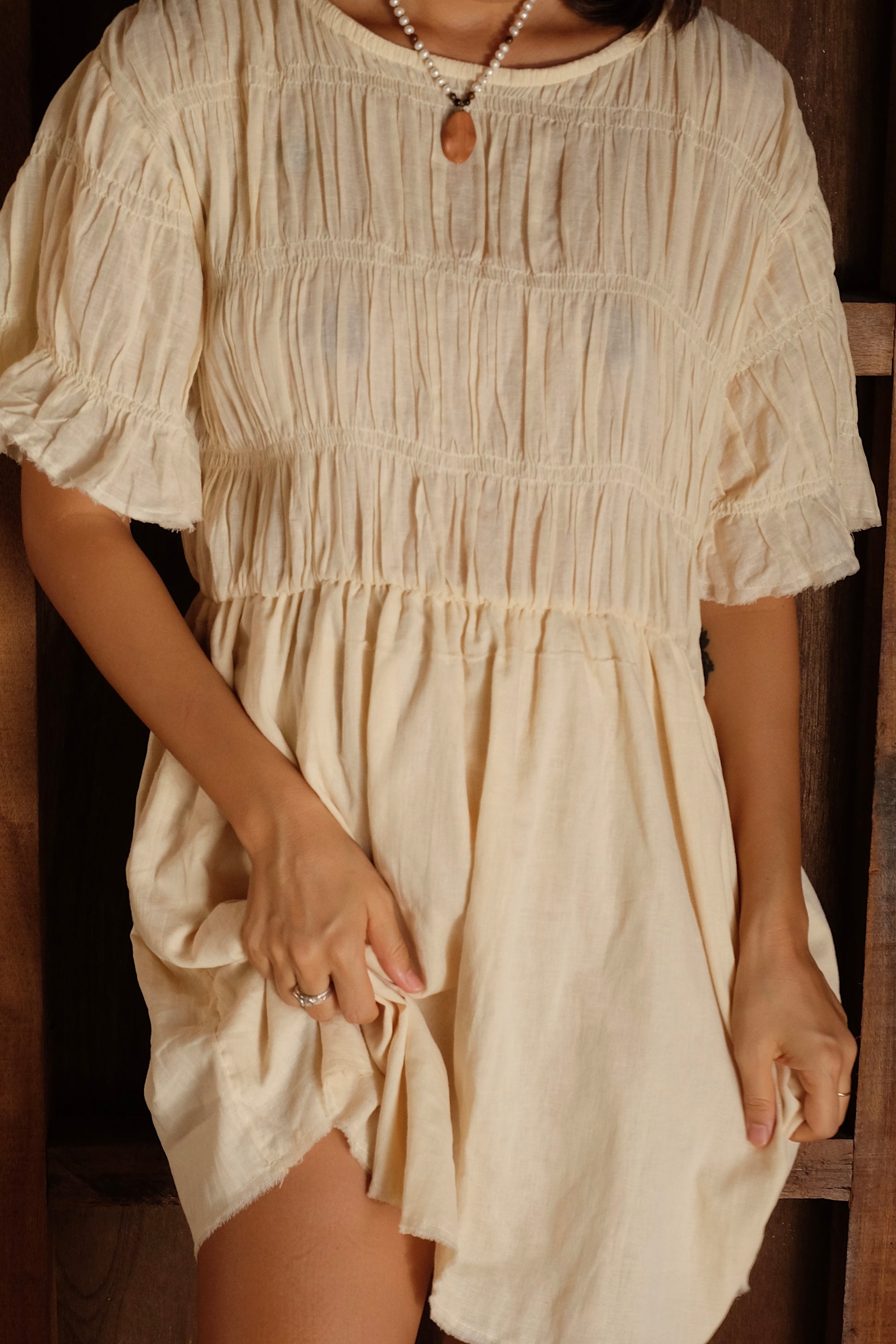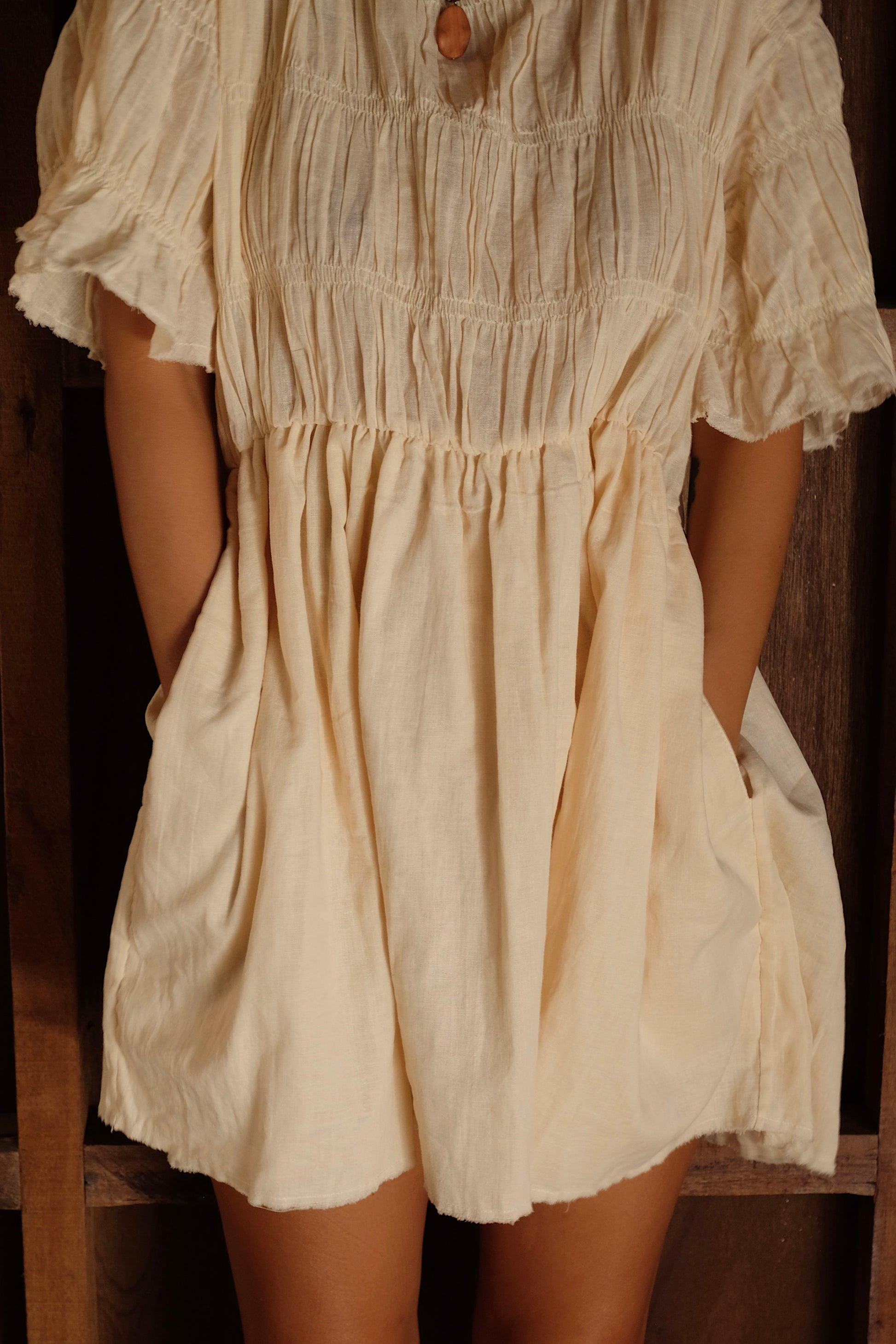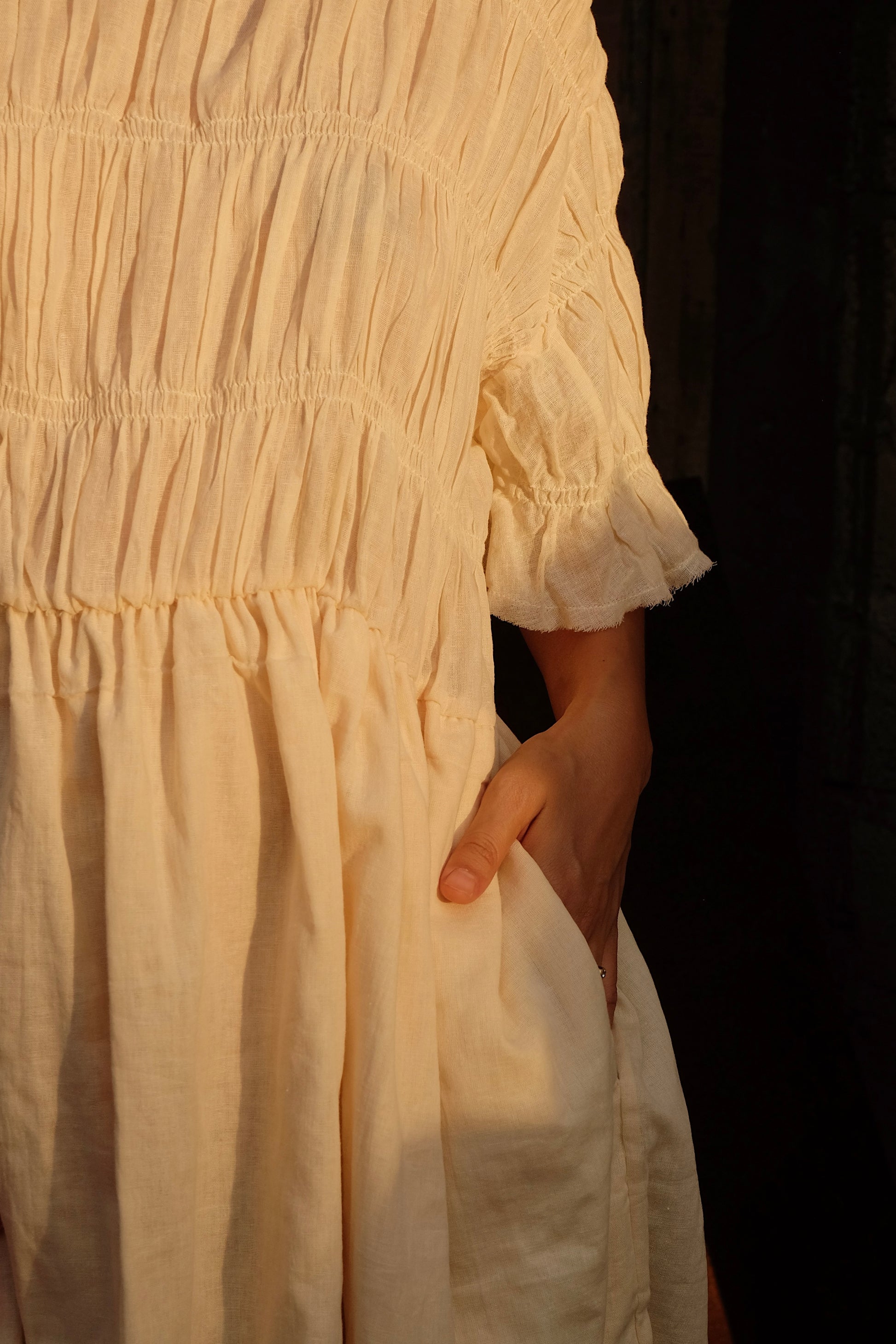 Beautiful light yellow, butter colour with light, flowy cotton fabric that is perfect for the hot summer days.