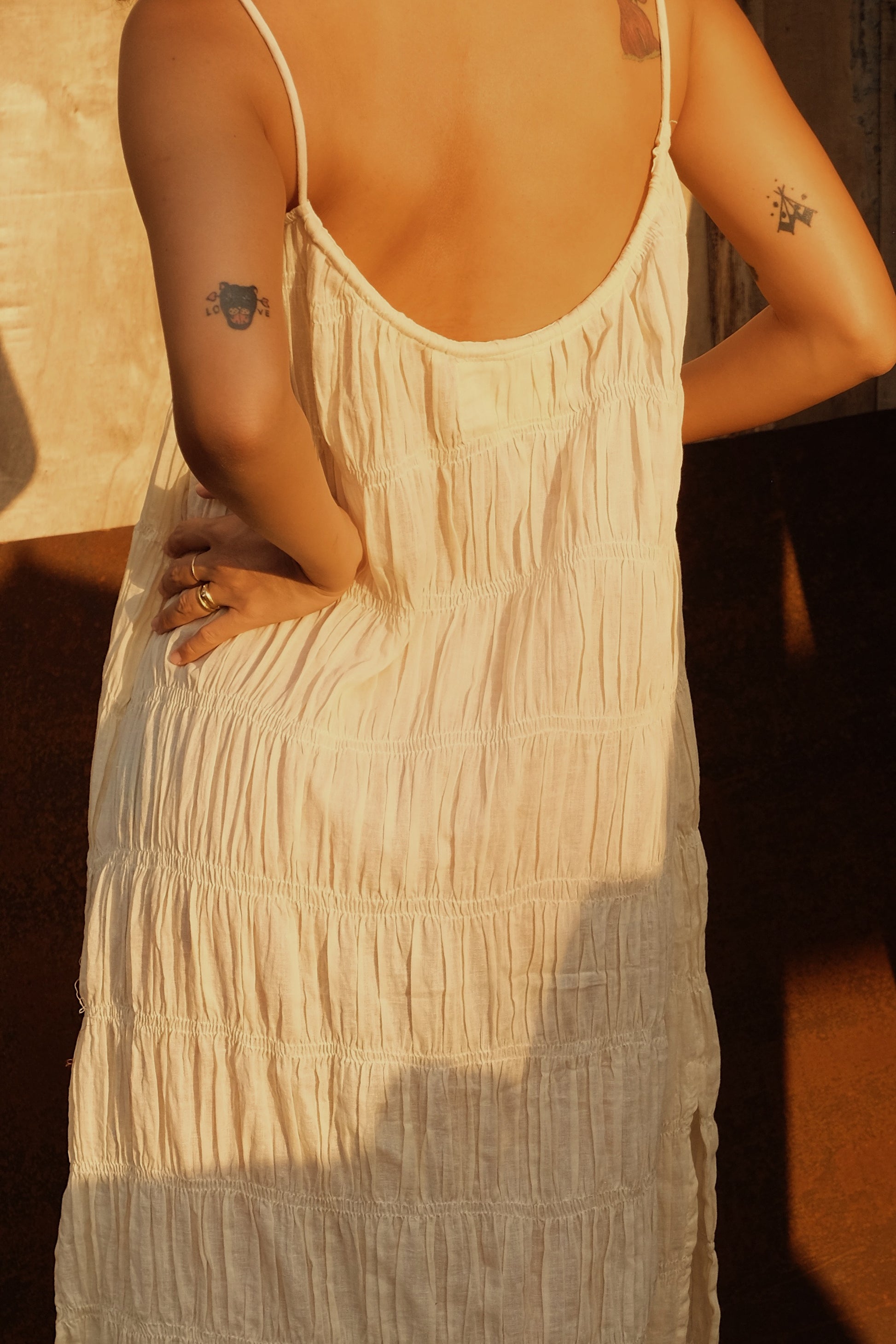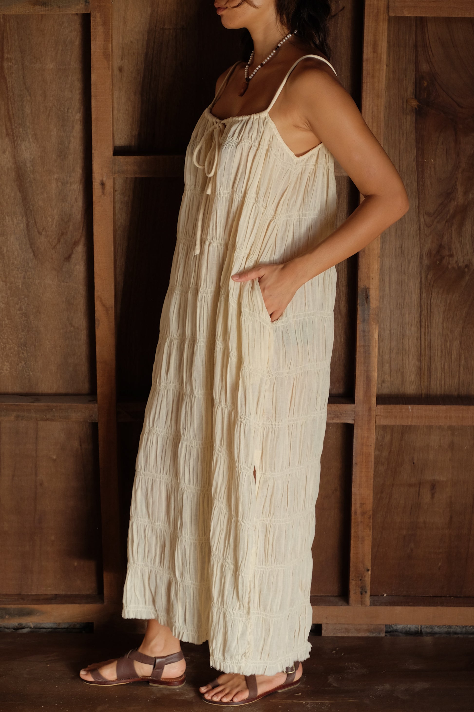 Beautiful light yellow, butter colour with light, flowy cotton fabric that is perfect for the hot summer days.