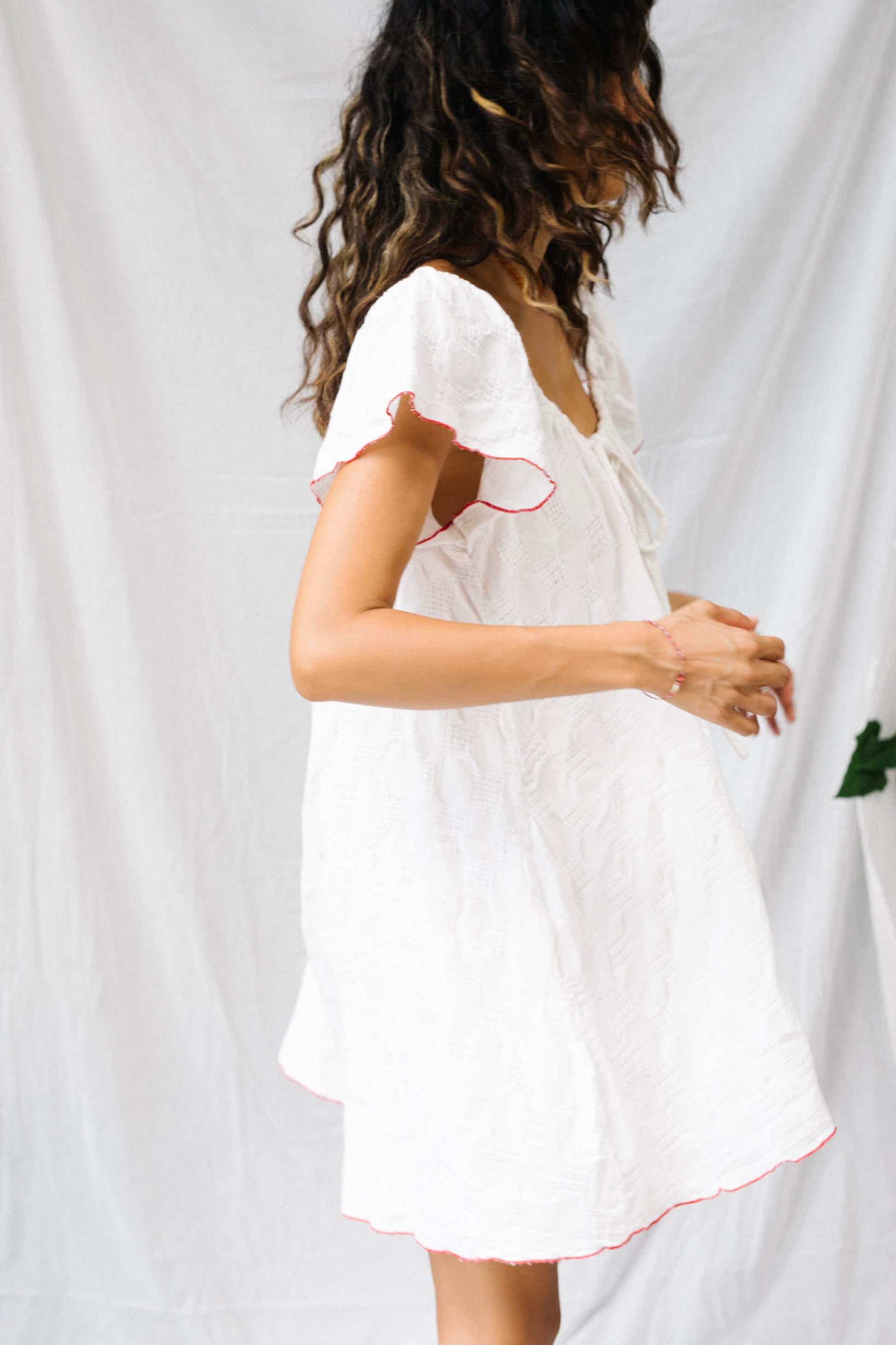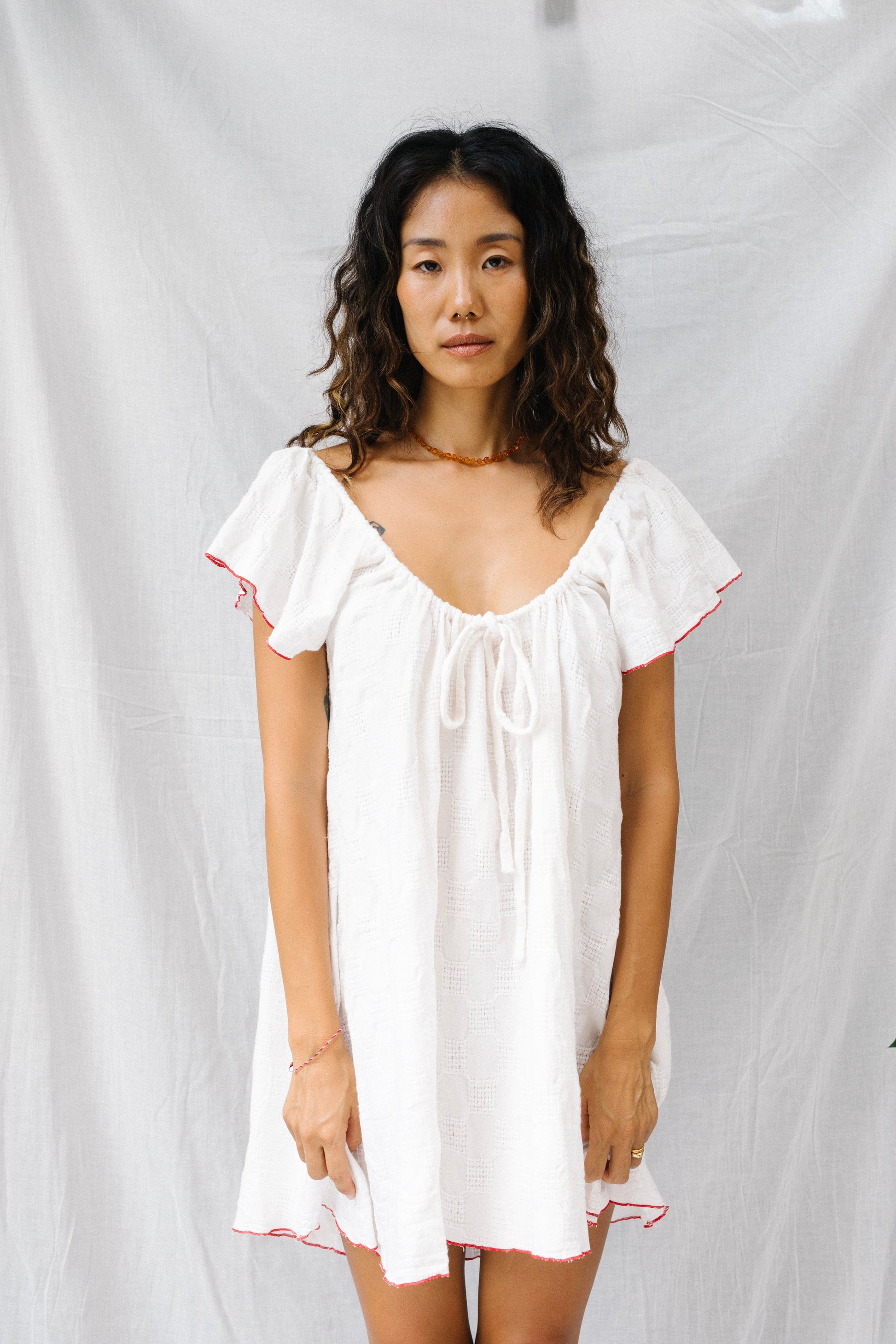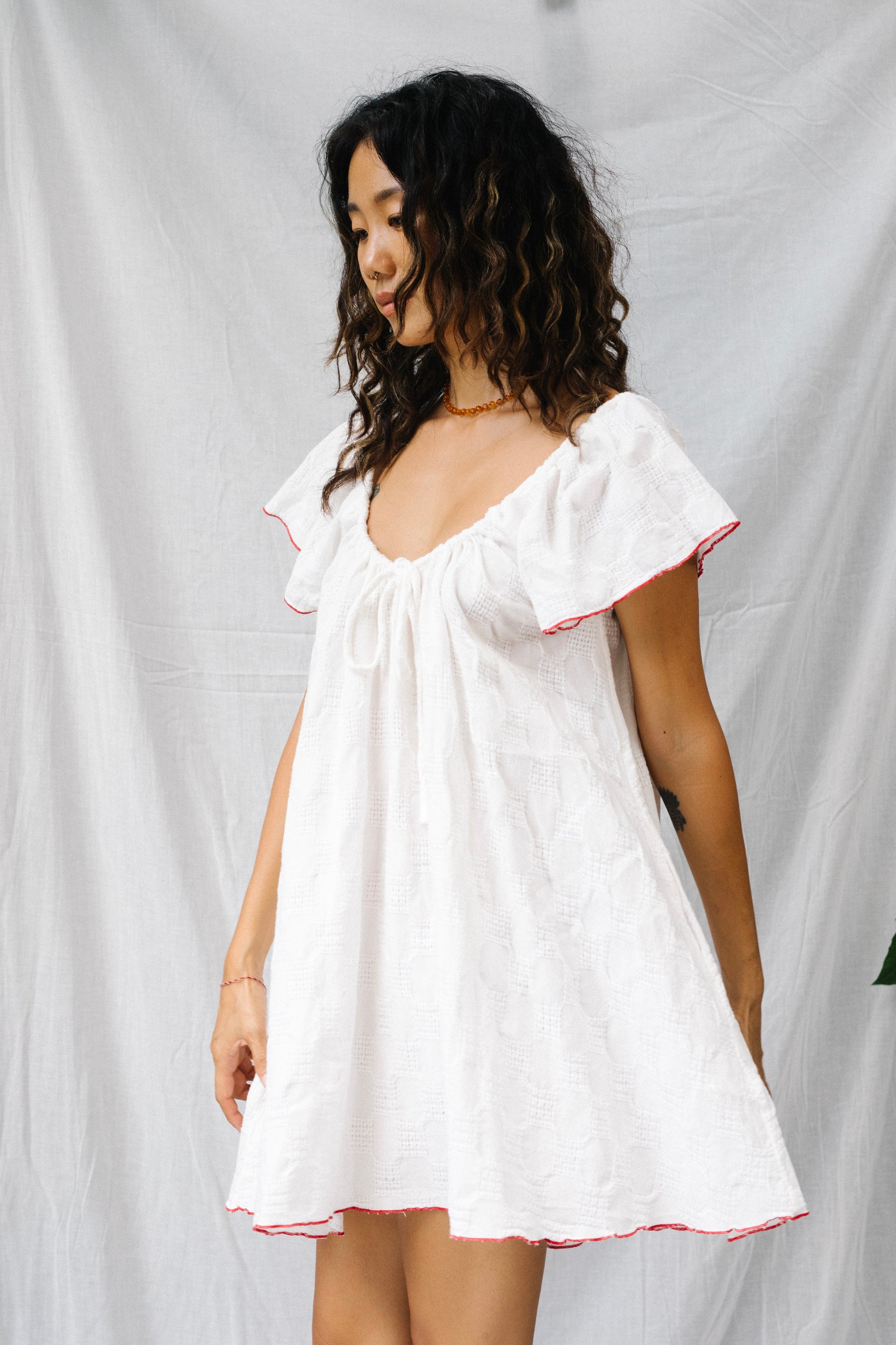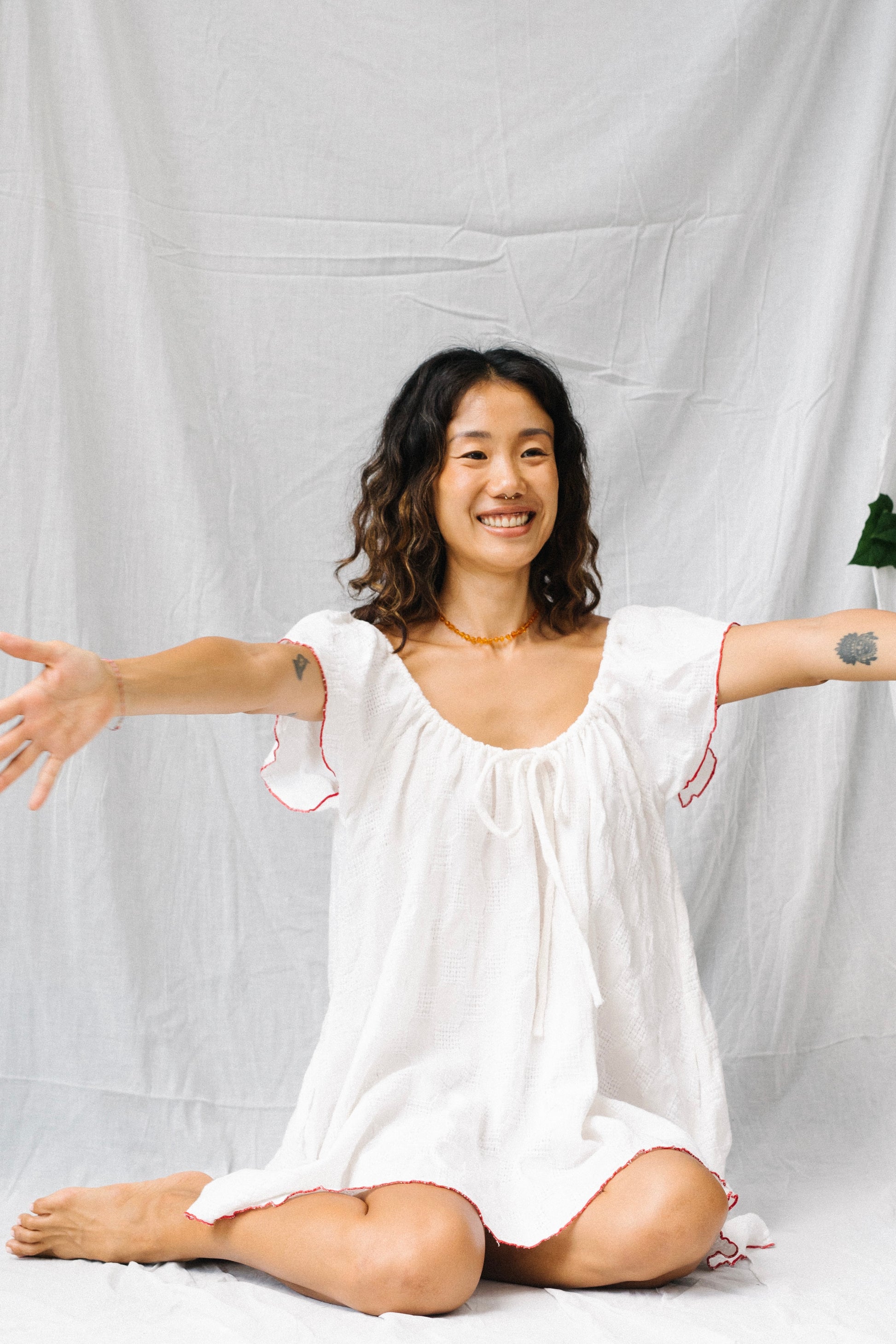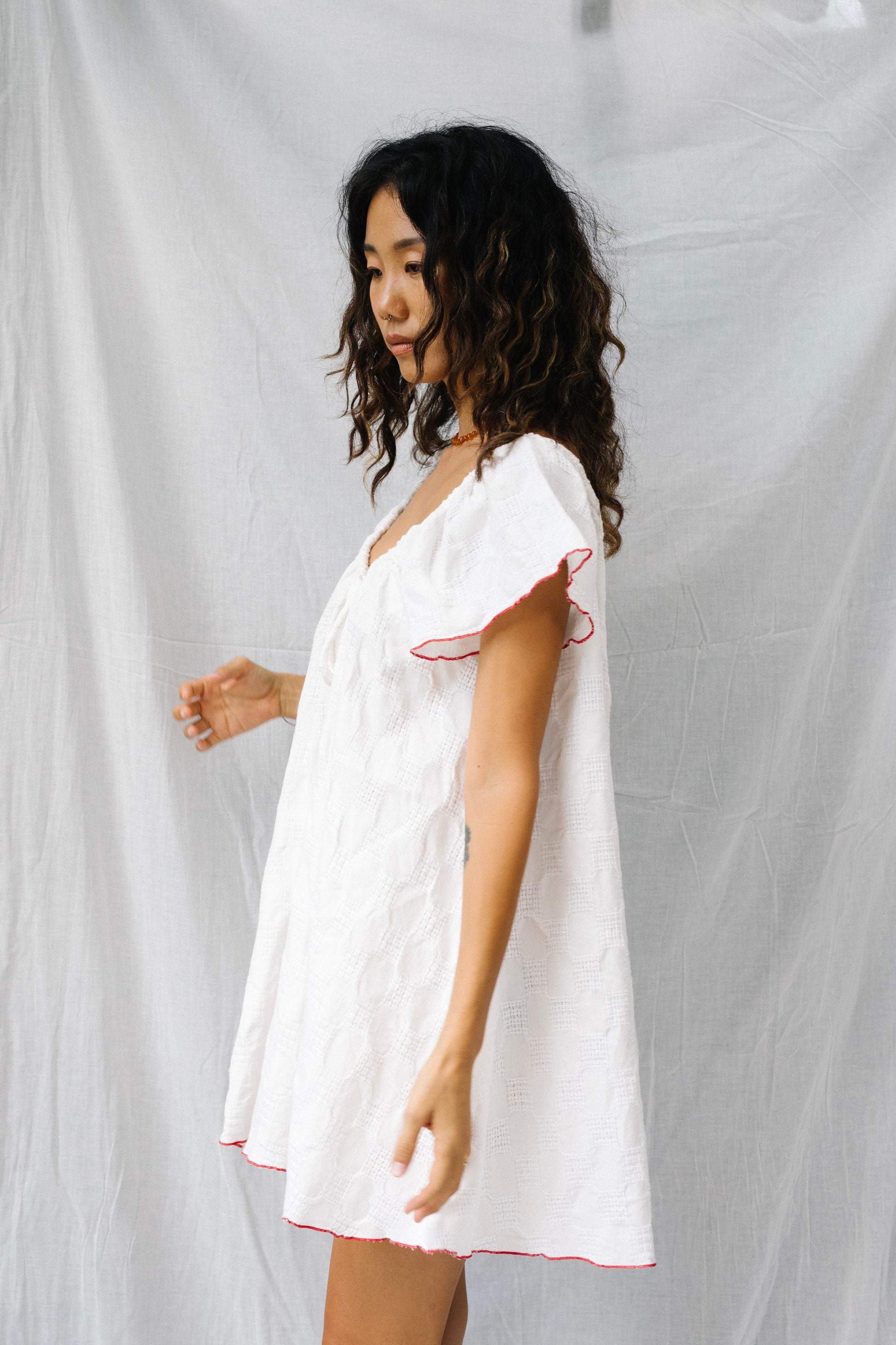 Made from 100% soft, breathable cotton, this adorable 'Sunshine' is designed with comfort in mind. The fabric features charming cotton patch details, adding a playful touch which I love to do. 'Sunshine' is finished with red overlocking stitching, offering a unique pop of colour and all about the ruffle this time :)