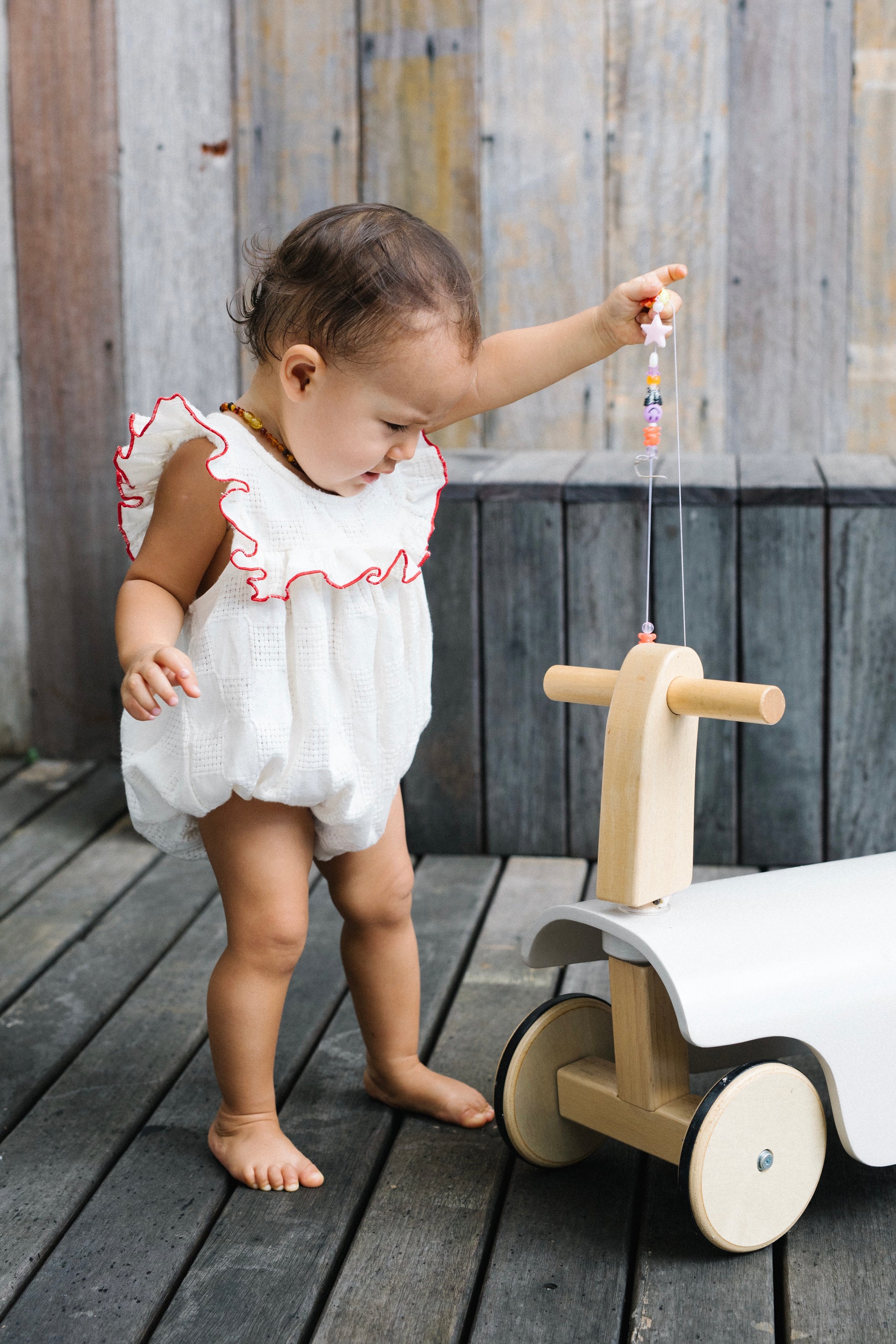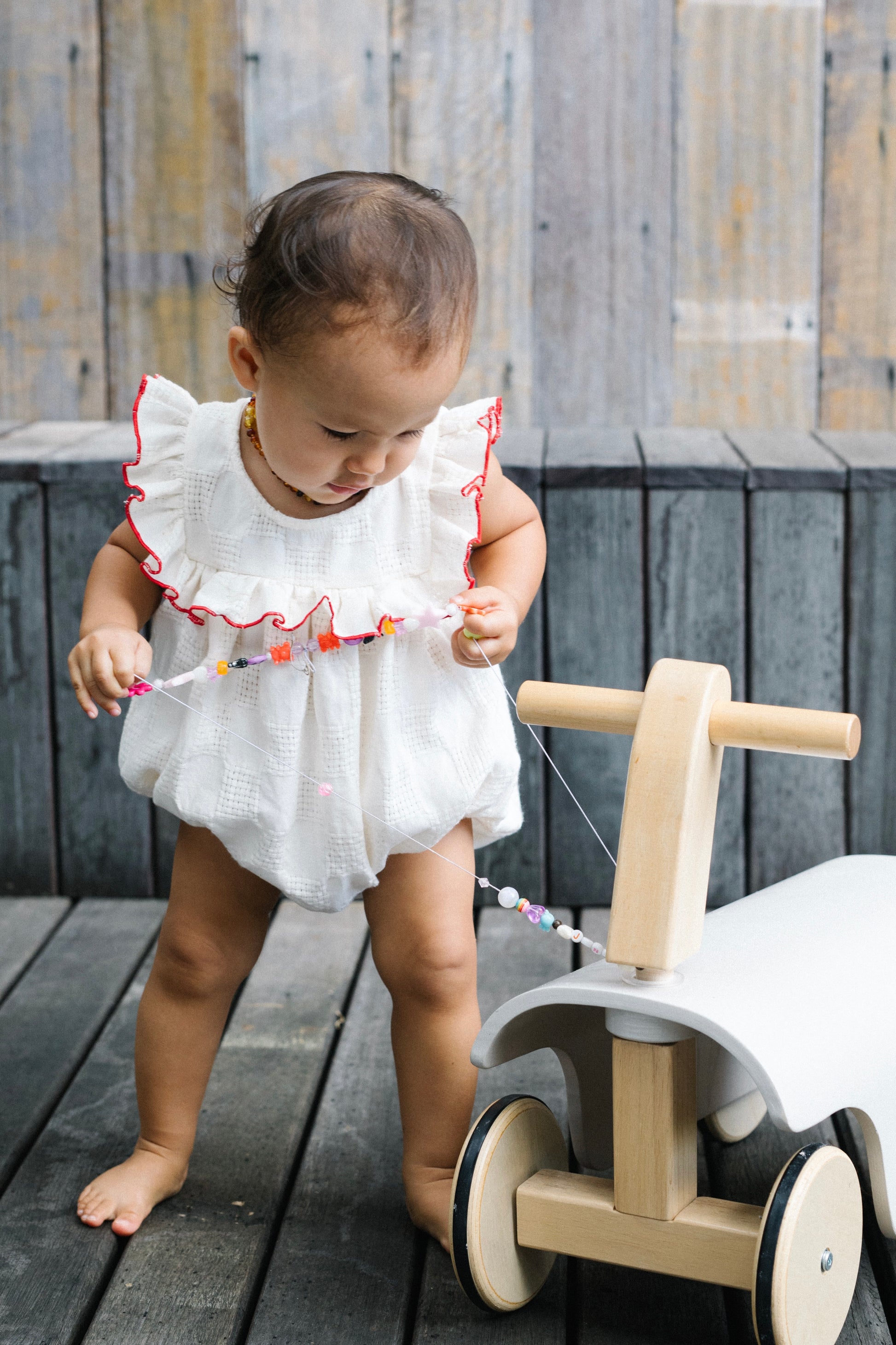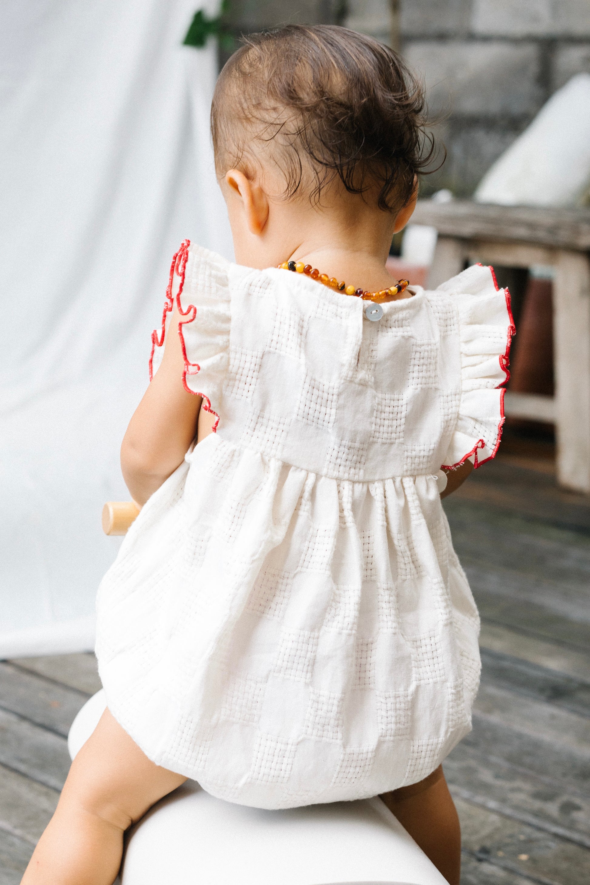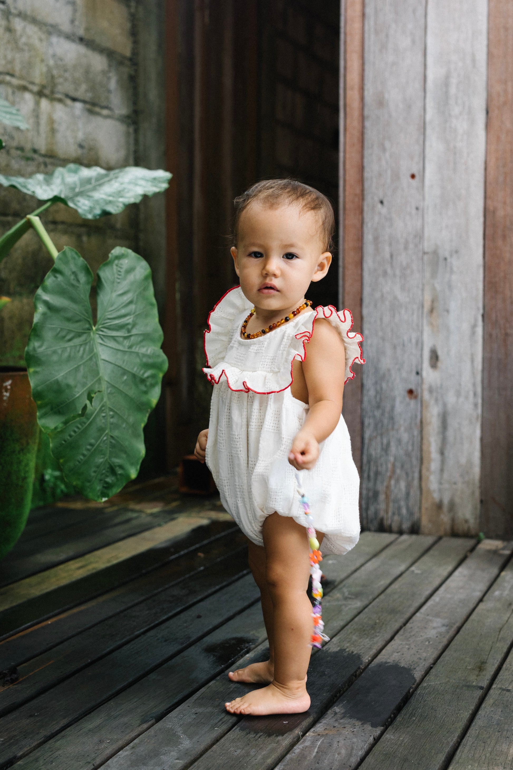 Made from 100% soft, breathable cotton, this adorable 'Sunshine' is designed with comfort and style in mind. The fabric features charming cotton patch details, adding a playful touch which I love to do. 'Sunshine' is finished with red overlocking stitching, offering a unique pop of colour and all about the ruffle this time :)