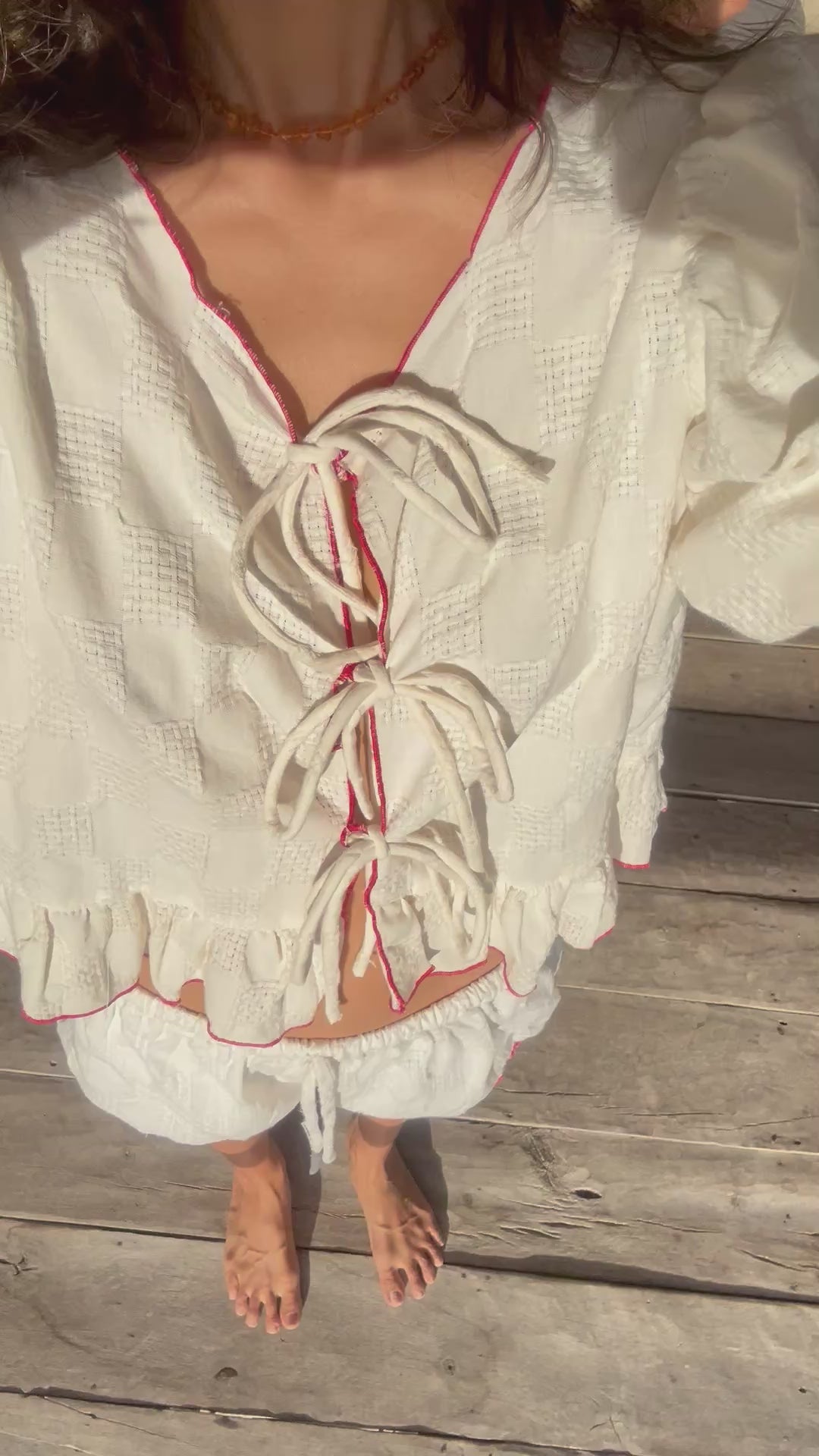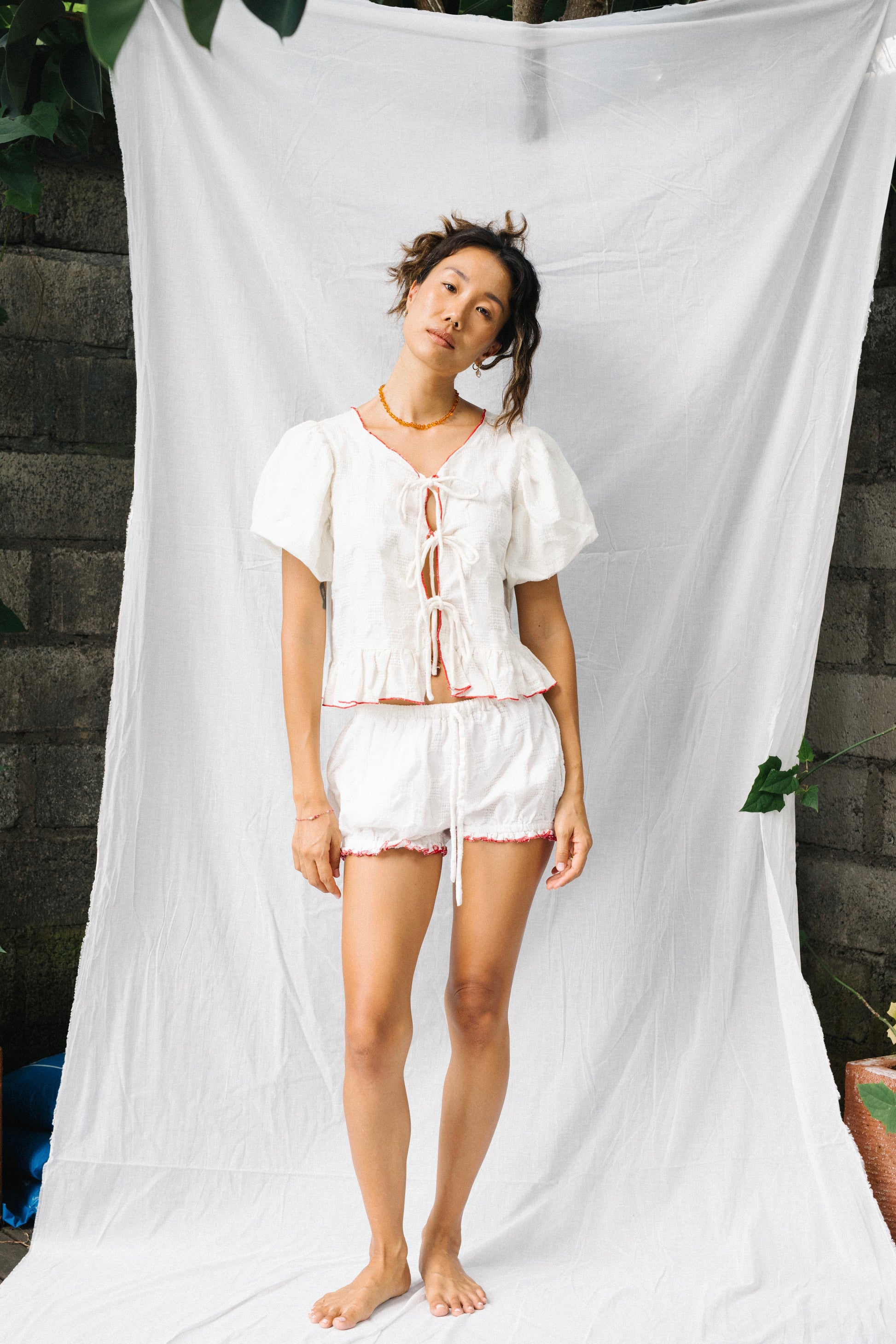 Made from 100% soft, breathable cotton, this adorable 'Sunshine' is designed with comfort in mind. The fabric features charming cotton patch details, adding a playful touch which I love to do. 'Sunshine' is finished with red overlocking stitching, offering a unique pop of colour and all about the ruffle this time :)
